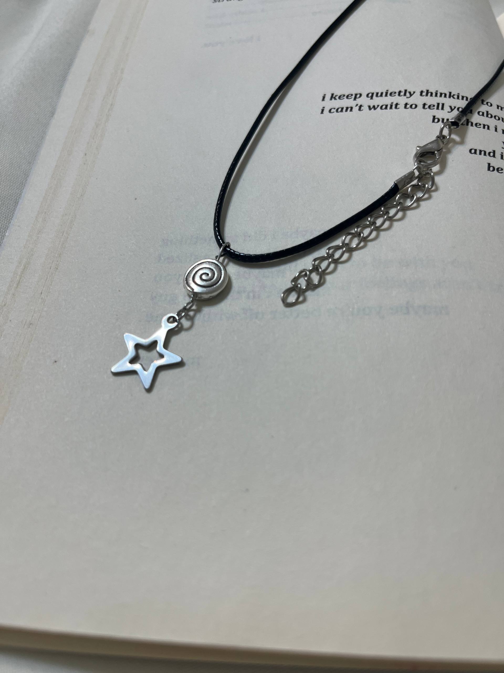 گردنبند اسپیرال ستاره با بند چرمی✨🌀 ستاره نماد هدایت، امید و آرزوست اسپیرال نماد رشد و تکامل ترکیب این دو یعنی حرکت در مسیر زندگی با امید به روشنایی