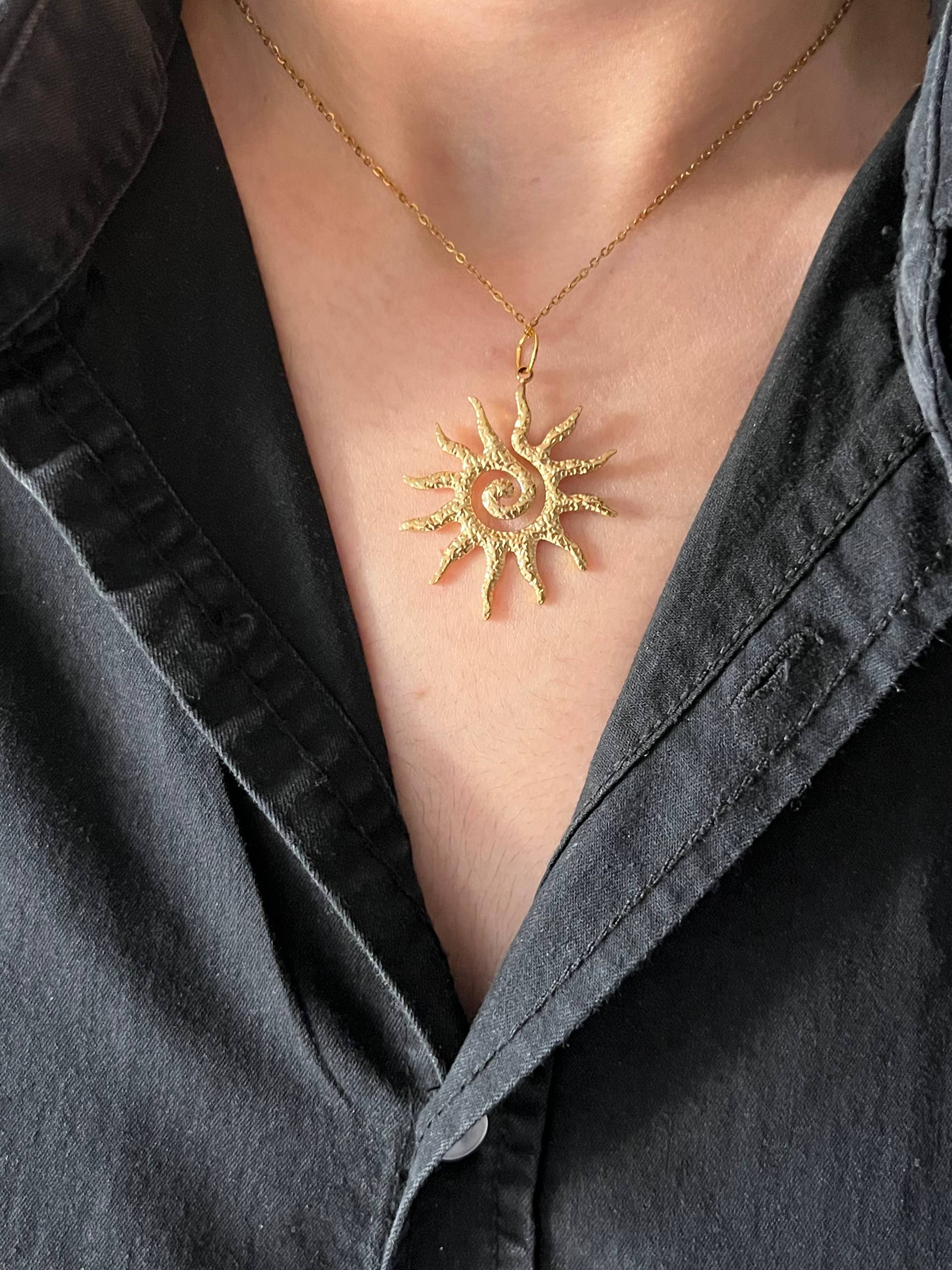 اسپیرال خورشیدی نماد انرژی بی پایانه افسانه ها می گن هرکس اونو همراه داشته باشه همیشه راهشو پیدا می کنه حتی تو تاریک ترین لحظه ها🌞🌀 پلاک ،زنجیر و اتصالات همگی رنگ ثابتن