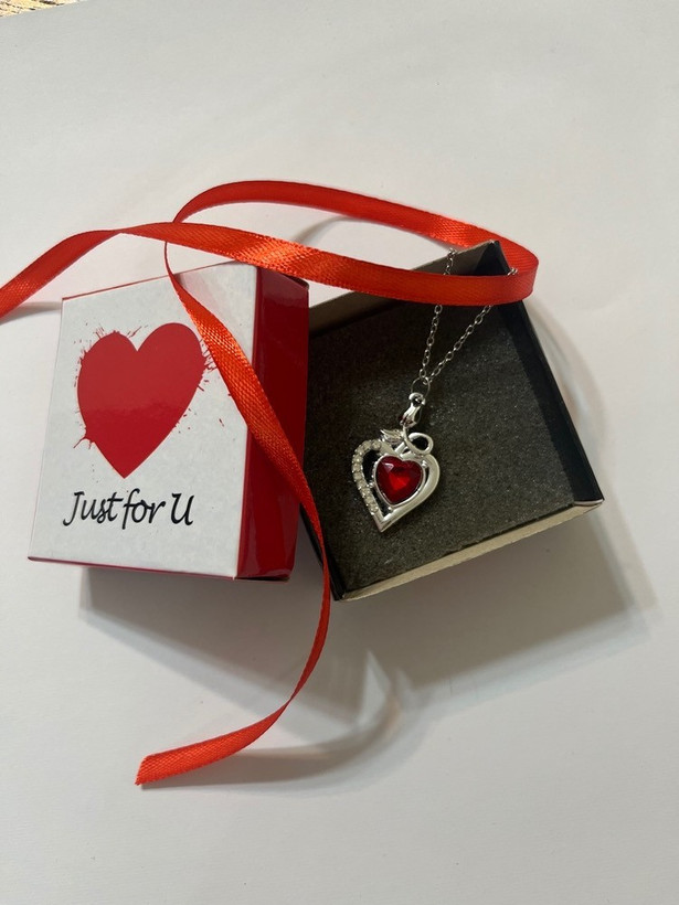 شامل گردنبند قرمز قلبی با باکس و روبان🎀
