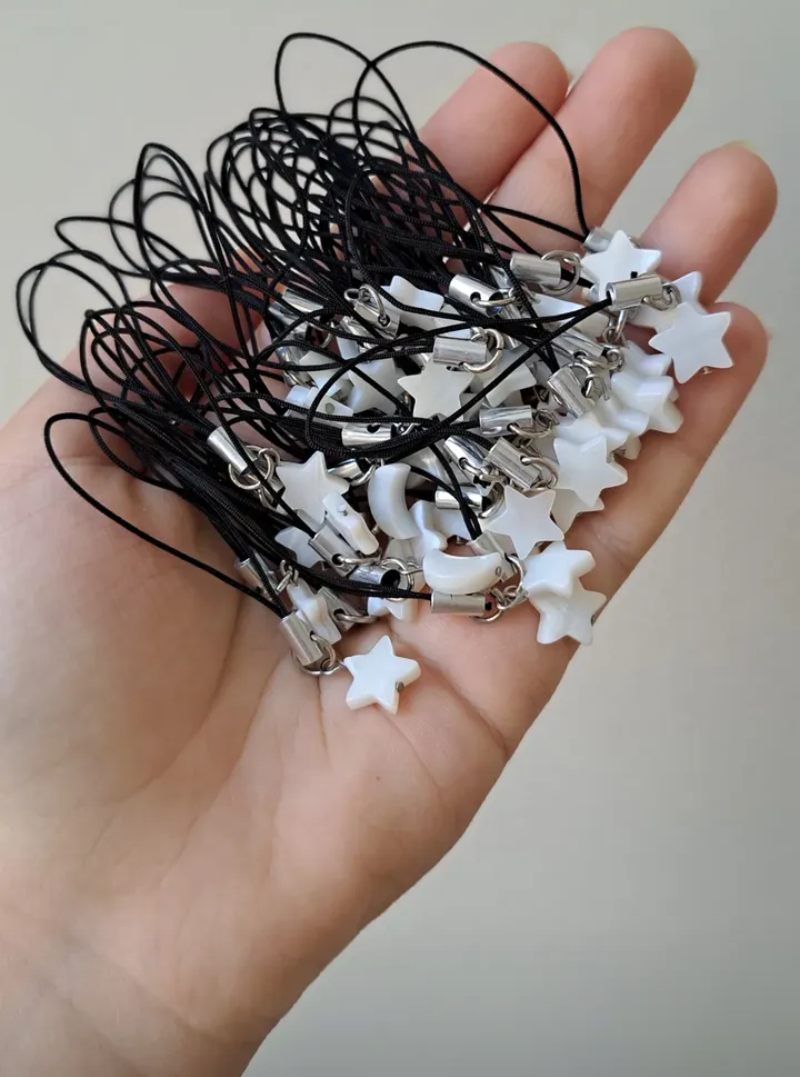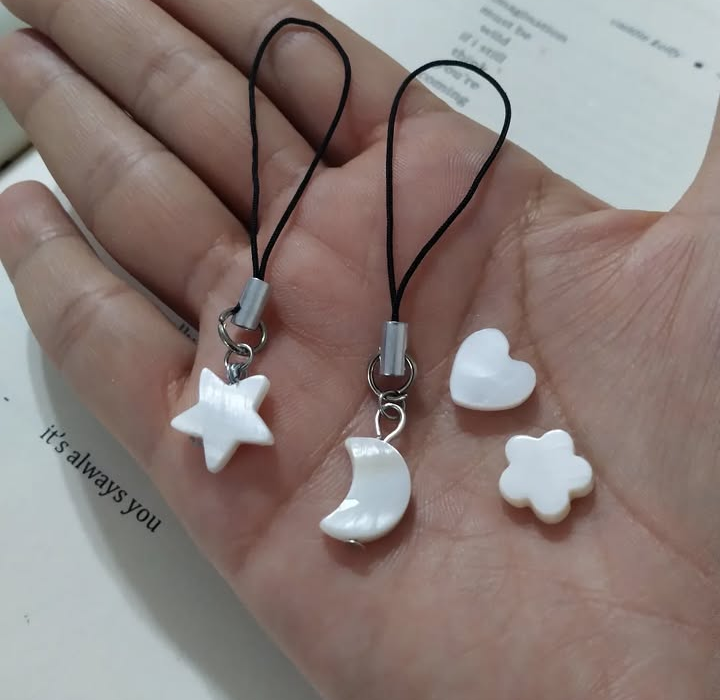 چارم صدفی در چهار مدل ماه و ستاره و قلب و گل قابل سفارشه قیمت درج شده برای هر کدوم از چارم هاست. میتونید به موبایل یا کیف آویزون کنید✨