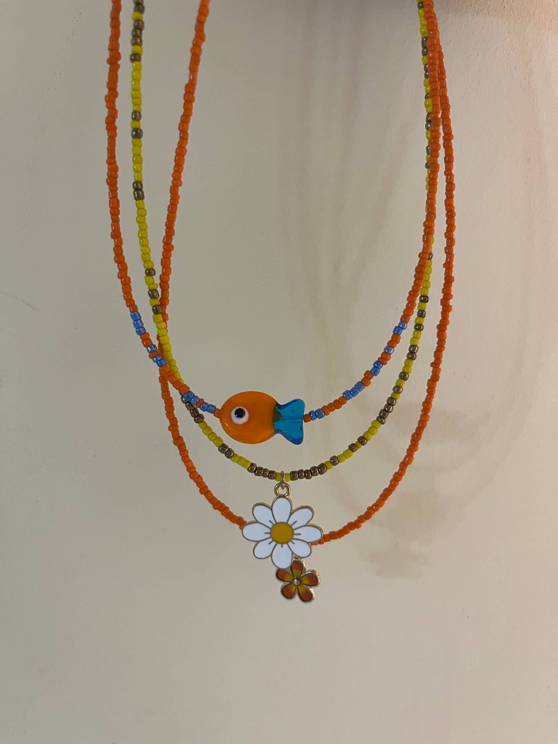 گردنبندای منجوقی دستساز هیچ کجا پیدا نمی کنی 🙂 منجوق و پلاکها رنگ ثابتن و پنج سانت زنجیر تنظیم سایز دارن قیمت درج شده برای هر کدوم از گردنبنداست.