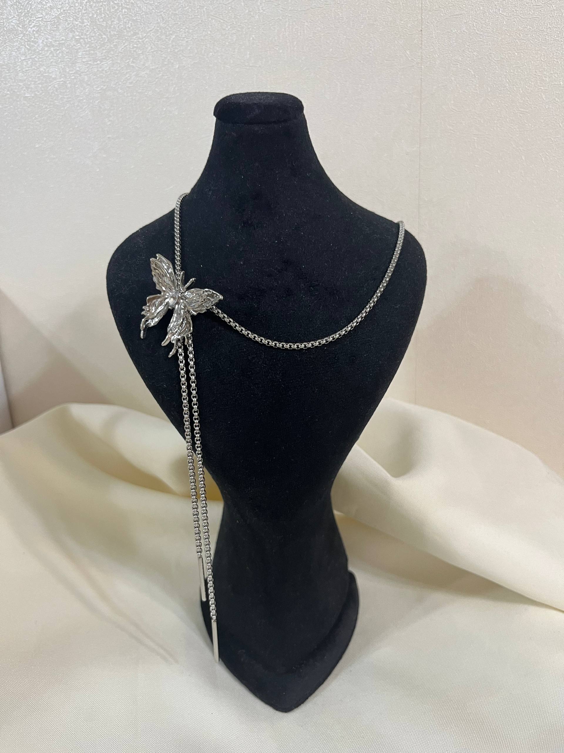 گردنبند استیل پروانه روی گردن به چند مدل مختلف بسته میشه چون قابلیت تنظیم سایز داره.. دور بازو و کمر هم میشه استفاده کرد تمام استیل و رنگ ثابته